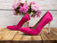 Zapato fucsia en seda con tacón dorado - 36