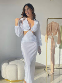 Vestido largo blanco con mangas - Blanco